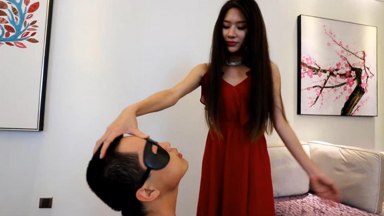 一只脚插着嘴、一只脚把m的头一次次的踩下去,就m羞辱的含着丝袜脚磕头;