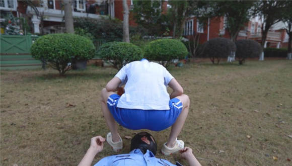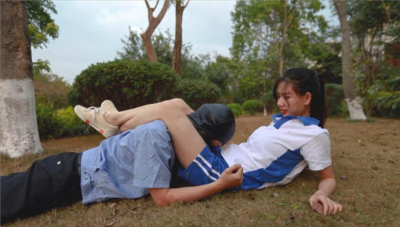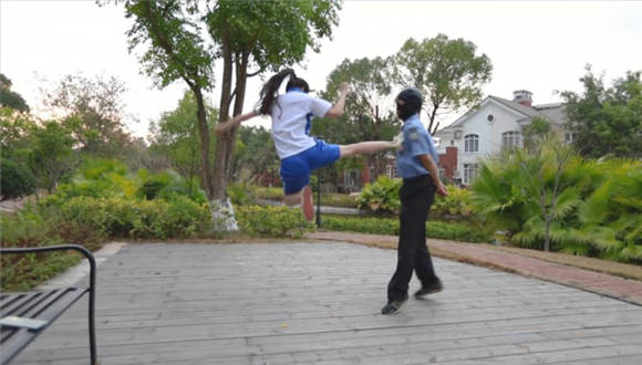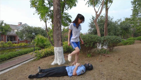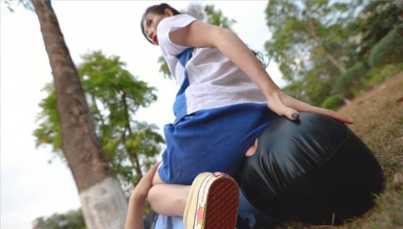 【内容简介】:芷晴扮演的学生小太妹,在校园抽烟,被保安看到了说了一顿。怎料保安碰到了个硬茬。放学后小太妹把保安喊道了公园里,拳脚相向,飞踹、暴踢,还有坐脸、腿绞。这次保安是彻彻底底被制服了。