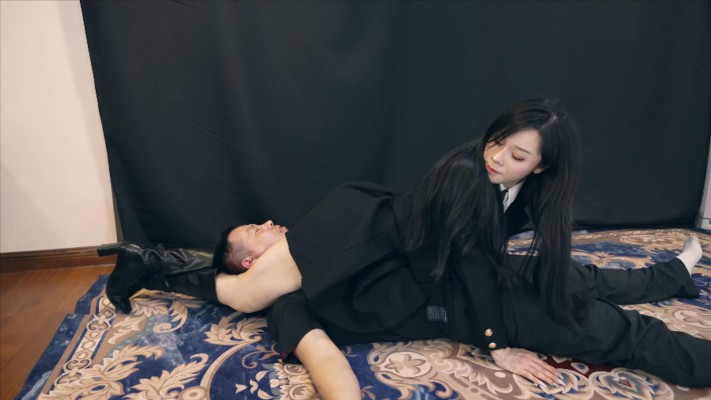 星奈大笑着站在男子身上乱踩乱踢,十分陶醉,最后用双腿腿绞令男子窒息而亡。