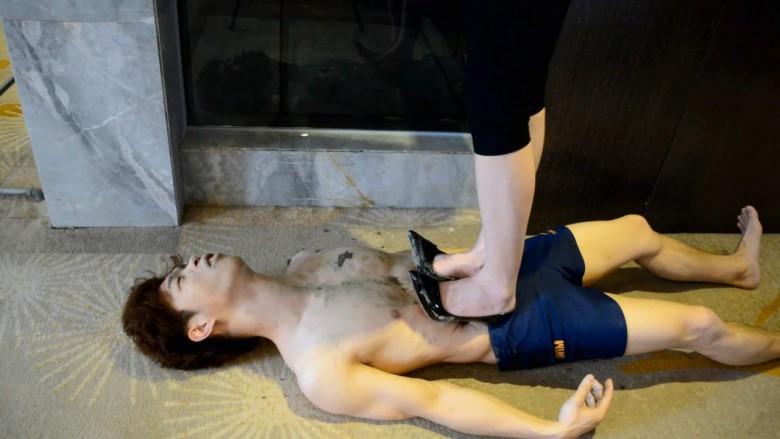 剧情:某男子走路不小心撞到女神,害女神踩到了泥地上,高跟鞋都弄脏了。女神要求男子擦干净,男子不肯还很嚣张。于是用膝盖顶肚子,顺势把头按倒在泥巴前。他拼命挣扎却没用。女神把男子带了回去…