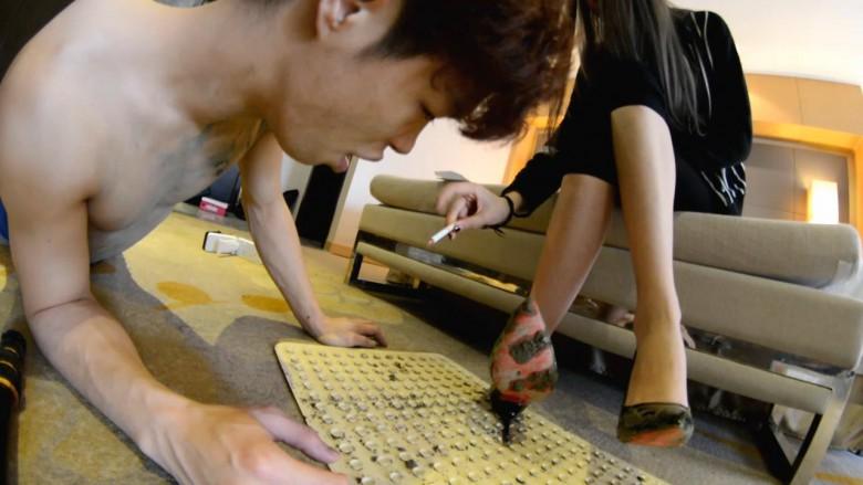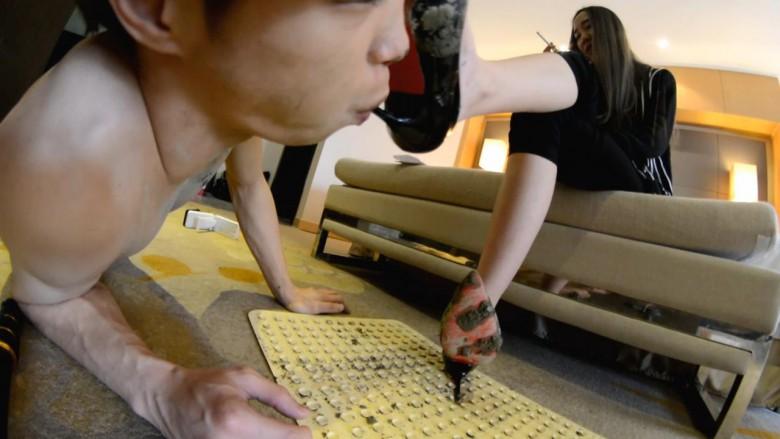 内容:沾满泥的鞋在身上、脸上乱踩、鞋底碾踩嘴巴舌头、鞋跟插嘴;让m跪着舔鞋,并不时吐口水、烟灰到地上踩过再让m继续舔;最后把m的脸踩到有泥的地上碾踩、并踩到背上把鞋擦干净