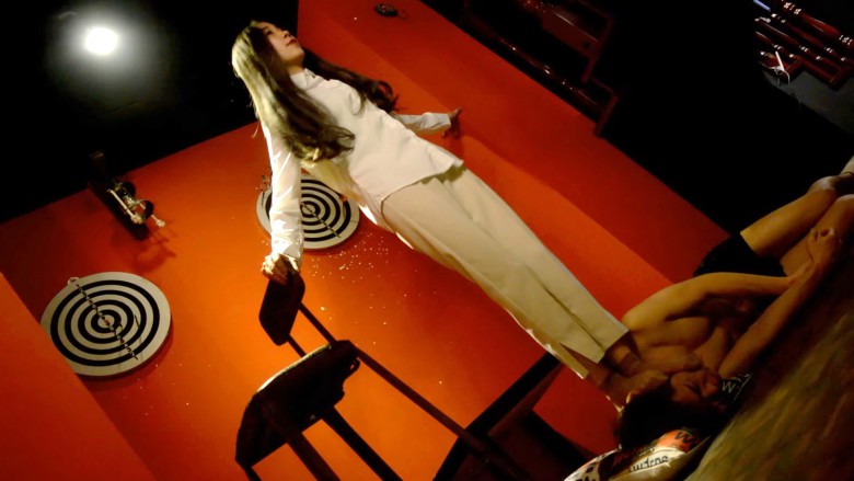 ③双脚穿高跟鞋踩手,让m用手捧着她的脚,为她脱鞋,并且不准让她的双脚沾地。然后命令m不断磕头,s却用力踩着头不让他抬起来。m只有艰难地用力顶着她的双脚慢慢抬起头,然后又被她双脚用力踩了下去。就这样反复磕着…