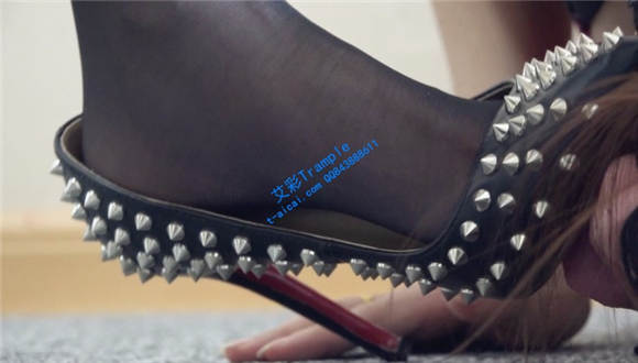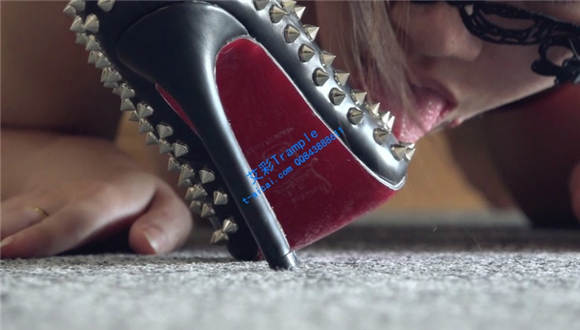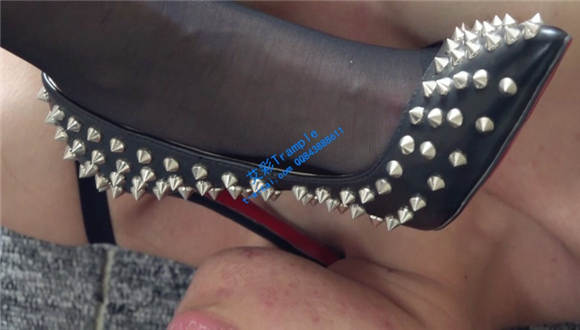 细跟钉子高跟鞋全体重践踏女M,在女M的大胸上踏步,甚至在胸上跳踩。调教女M舔钉子高跟鞋,黑丝袜踩踏跳踩,语言挑逗。