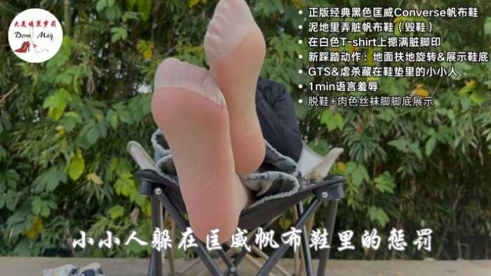 大美女神接到了一个视频定制,想要女神把日常穿的匡威在泥地里面踩脏,然后用泥脚印给狗子的白色T-shirt上都摁满纪念戳~在女神拍摄这个定制的时候,这个狗子喝了神奇药水,偷偷潜伏进了女神的匡威鞋内偷看。女神拍完视频,脱鞋休息,意外发现了这个偷偷藏在鞋子里的小小人。女神把小小人从鞋子里拿出,对他进行了一番无情的讥讽和羞辱嘲笑,小小人一直求情希望女神能够饶过他这一回,女神冷笑着毫不留情得把小小人拽在手心里捏死了。经过这一番事情,女王的丝袜上出了一脚汗,躺在椅子上休息~丝袜脚由远及近,正对整个屏幕,这种压迫感最强!拿去做手机壁纸喜欢吗?