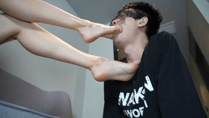 美脚崇拜,羞辱,瘦狗痴迷舔食玉足,啃食美足每个部位。