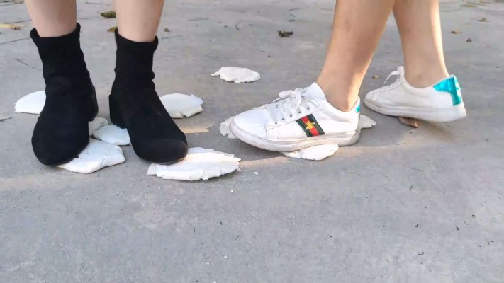 JK短靴小鱼姐姐携手梦梦小白鞋户外爆踩馒头羞辱 YC-241116-5