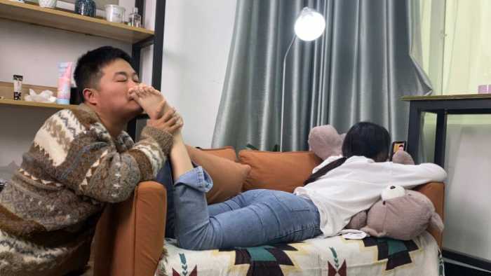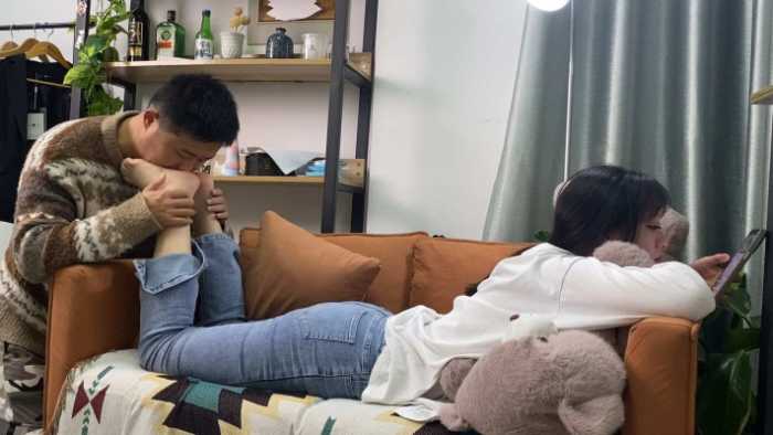 00后酱一边玩手机一边被舔脚