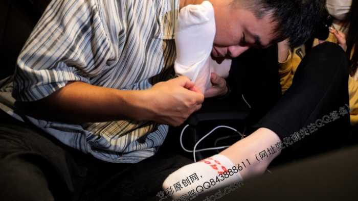 然后让00后趴着慢慢把鞋子脱下来,教练发现袜子脱下来能看到湿湿的,忍不住闻了闻袜底,