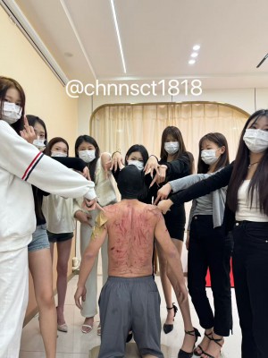 锋利的高跟鞋每经过一下身体,就能轻松的留下血印,被这么多清纯可爱的女生折磨死都是心甘情愿的。