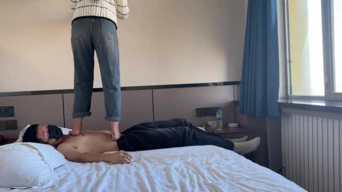 能够感觉得到女主比较害羞,在身上长时间站立,时不时小心用脚试探,生怕把我踩疼了。