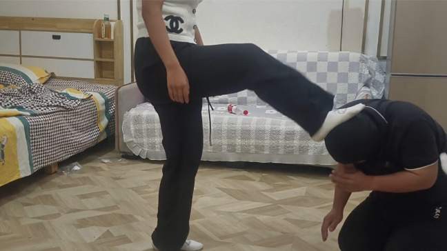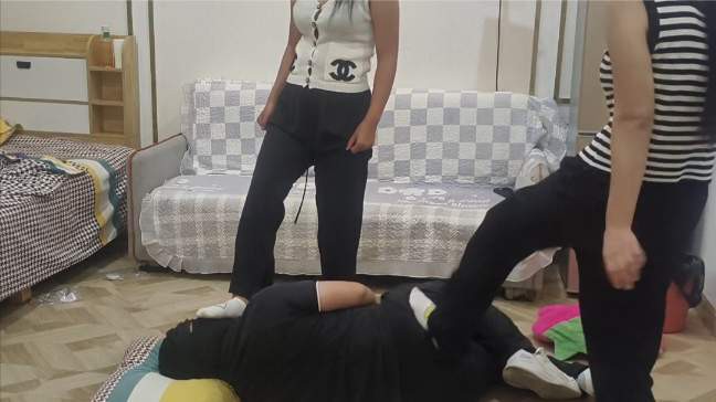 【简介】新进新人慧妈泽妈,一开始两个人不知道怎么虐狗先试试水踩在贱狗的脑袋上背上还小心翼翼的,看贱狗一点事都没有就开始她们邪恶的一面,暴力踢踹贱狗让贱狗喊她们妈妈不断的辱骂贱狗,然后让贱狗跪下来给她们磕头,一个从前面一个从后面肆无忌惮的踹。然后踩在贱狗的脑袋上感觉特别有优越感,然后坐在沙发上让贱狗舔她们穿着袜子的臭脚丫。对话非常真实,在让贱狗从她们高贵的胯下钻过去让贱狗感受一下胯下的快乐。还当马骑最后妈妈们累了看贱狗表现的很好赏赐贱狗两杯圣水贱狗可开心了。注(有视频水印)