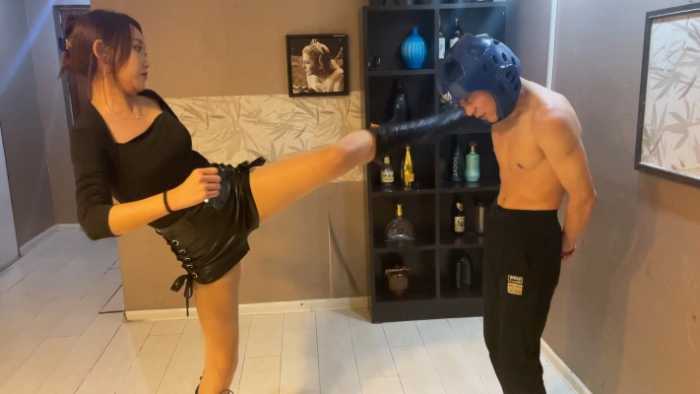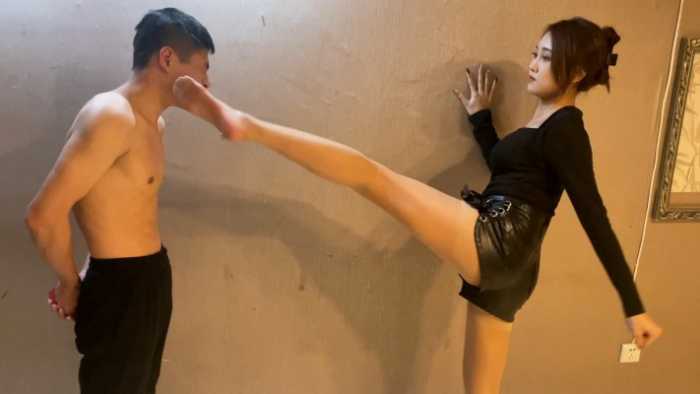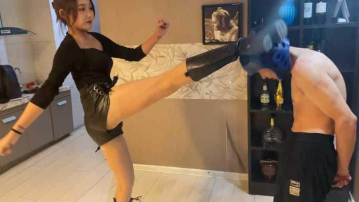 内容简介: 已隐退的汐柠小主经典作品,由于汐柠有舞蹈和跆拳道的功底,腿部柔韧度很高,可以轻松的高踢腿击头,加上黑色高通皮靴的加持,力度特别恐怖,男M戴着头部护具都承受不住阵阵眩晕,之后干脆去除护具丝袜脚踢击,那种清脆的啪啪声听着特别过瘾,踢晕之后汐柠又开始了地狱般的踢裆,身材弱小的男M根本承受不住汐柠小主专业的腿法,很快就被废掉了。