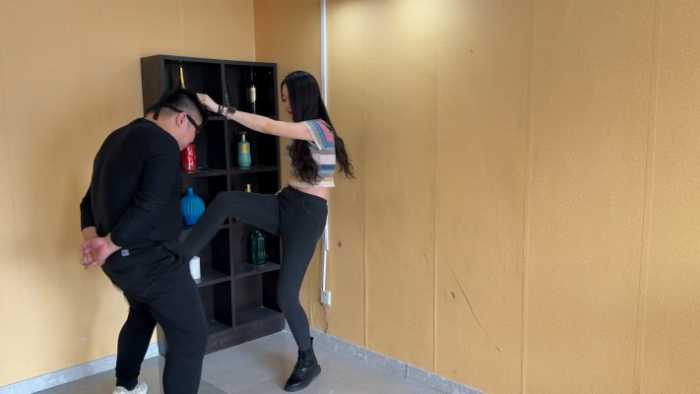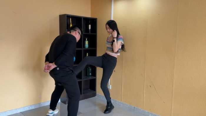 内容简介: 外表甜美又不是御姐范儿的女主沐沐,性感的牛仔裤+皮短靴,以教学讲解的口吻,向姐妹闺蜜传授如何通过击打下体来惩罚折磨色狼,并且亲身展示。一套动作流程行云流水,最后教学视频的结束也代表着色狼的废掉。