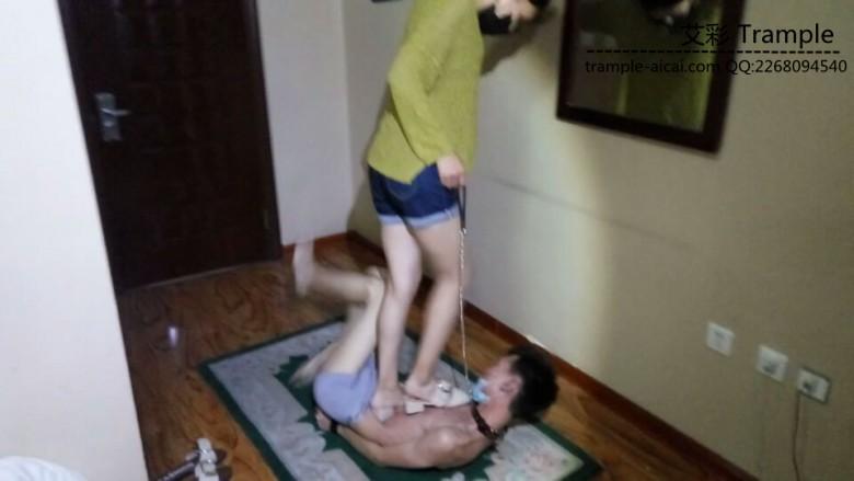 磕头过后,命令m跪爬在地上,全体重踩在头上,m笨手笨脚差点把把我弄摔