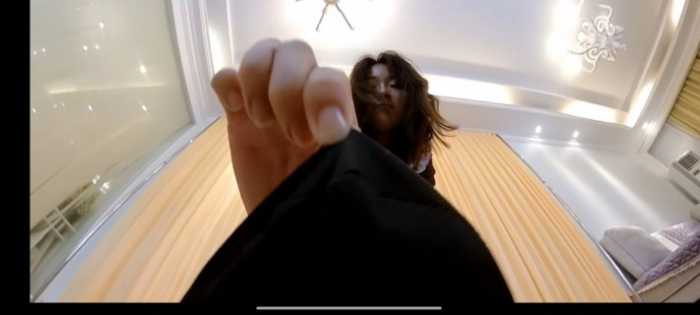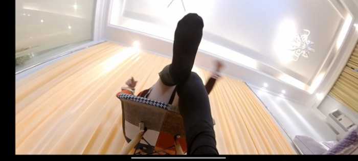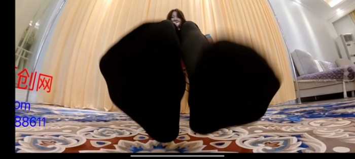 接着抬起巨大的脚进行踩踏、放在椅子上坐压、放进鞋子里,最后强迫舔臭棉袜脚。