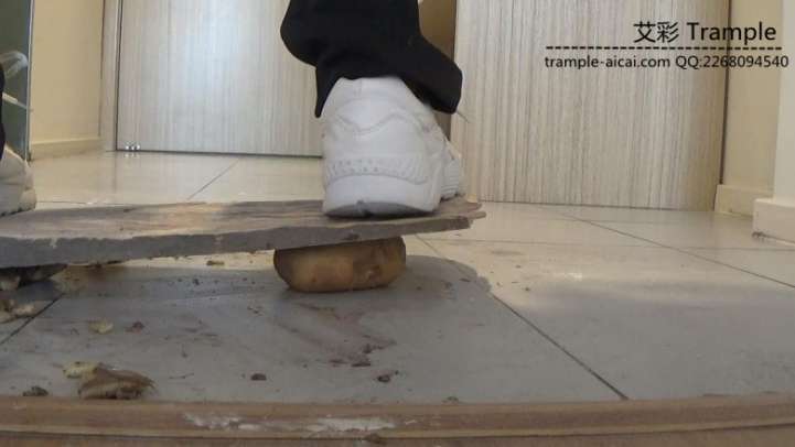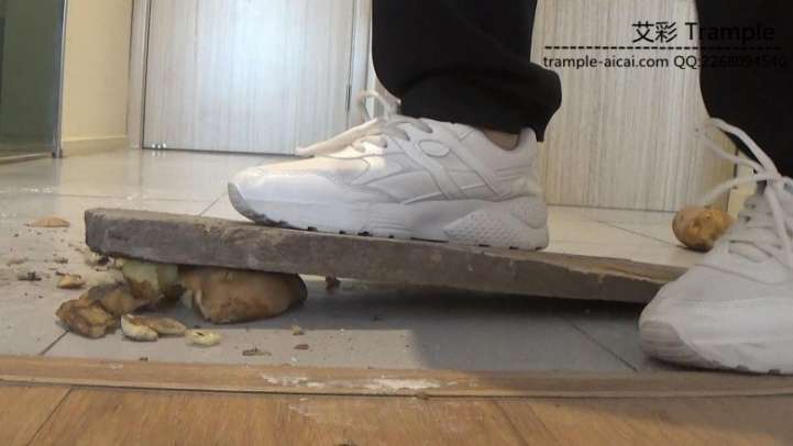 剧情介绍:职业装女孩高跟物品木板压碎白色运动鞋踩踏粉碎.