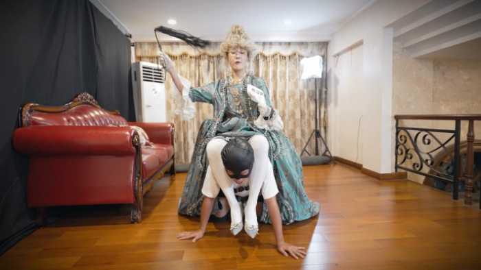 【内容简介】: 金发珍珠皇冠、绿裙高跟的奥莉安娜大帝挥杖宣告班图皇室必须跪伏,椭圆裙撑掀起审判书,赤足踩脸口含丝袜羞辱,锁链鞭影中国王成胯下坐骑。