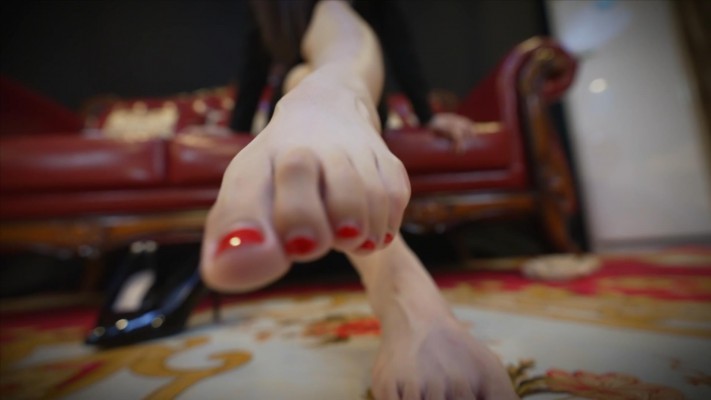 老师对你羞辱一番后,说她的脚在鞋子里已经闷了一天了,开始让你舔丝袜脚吸去味道;后面你将丝袜舔湿了,老师便脱去丝袜,再让你慢慢舔舐裸足…