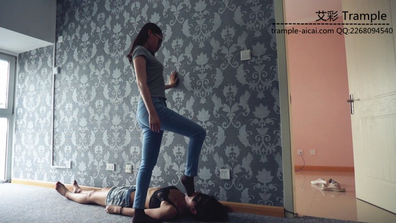 女奴的脚上,非常优美并且残忍。全体重踩到女奴肚子上插嘴,等等。女奴被插的一只干呕,流口水,但还是愿意继续被虐