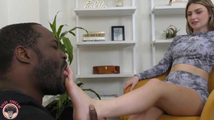 神仙颜值Evans女神凉拖白嫩汗脚搭在小黑身上!让他闻舔除汗除臭JS251123~3