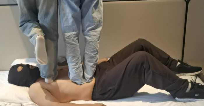 鞋子是硬的,很痛,把毯子踩咳嗽了很多次,但是女主还是不下来,甚至还再上面晃悠???,然后脖子胸口全是印子,可看截图~脱掉鞋子,反扣再毯子脸上,有一次直接把他弄到差点晕过去,事后他说他那时候一点气体都没有,鼻子嘴巴全都被堵在鞋子里面。毯子说自己感觉很渺小,两女主很高大,可能是因为呼吸不了,生命之极限把,感觉自己要ga了,然后又是鞋子的,后面肉丝脚和鼻子嘴接触的一瞬间,毯子直接跟他肾上腺素一样,还得是肉丝脚呢,又因为被鞋子包裹着,天气也热,少女的芳香+鞋子捂着的加持就是生命的源泉~~~白袜就更加了,上午去驾校练车了,可惜没拍脚底,黄的,嘿嘿