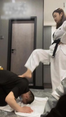 【LAPAPA】初六40码大脚跆拳道疯狂脚耳光强迫贱货舔脚 大脚踹扁贱狗 YC-220804-4
