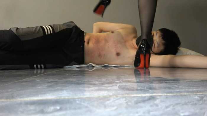 脚垫随时供主人消遣,休息时搭在脚垫上,活动时黑丝脚踩踏,残忍黑丝高跟踩踏。