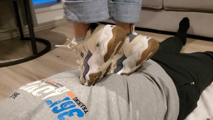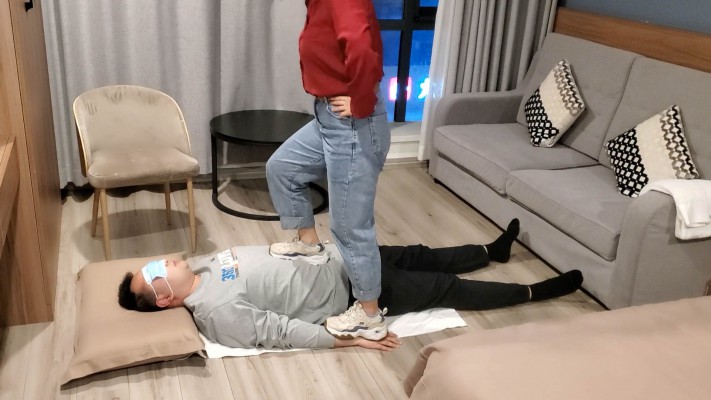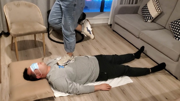 一部库存的现实视频,时间比较长,无多视角充时间全程踩踏,纯现实踩踏,有对话。视频主要分三段,第一段属于热身阶段,在毯子身上全体重踩踏再到慢慢踏步到全体重踮脚尖踩踏,逐渐加大强度。第二阶段让毯子脱下衣服在毯子身上跳舞,完全无视毯子。还有全体重踩脖子以及踩头内容。第三阶段脱鞋棉袜踩,主要以踩脸以及全体重踩脖子为主,还有踩脸窒息的内容。总之是一部十分真实的现实视频,内容丰富~