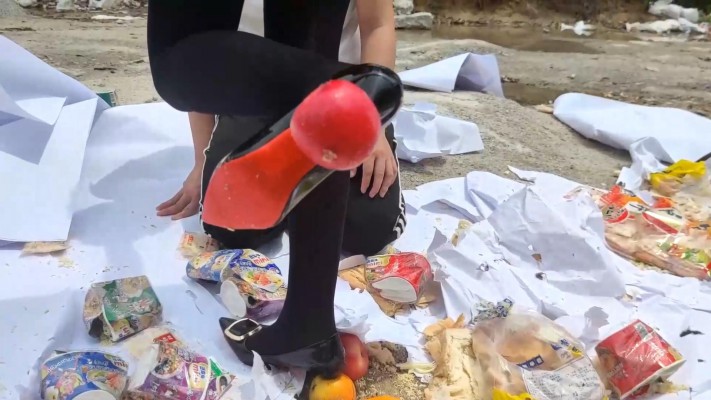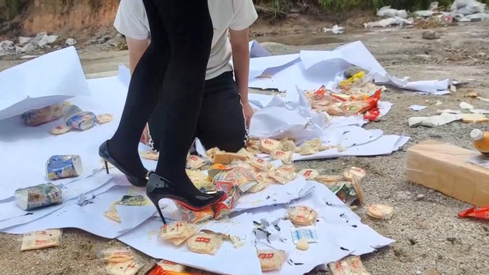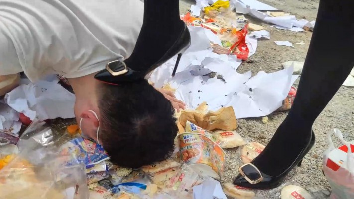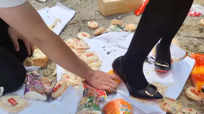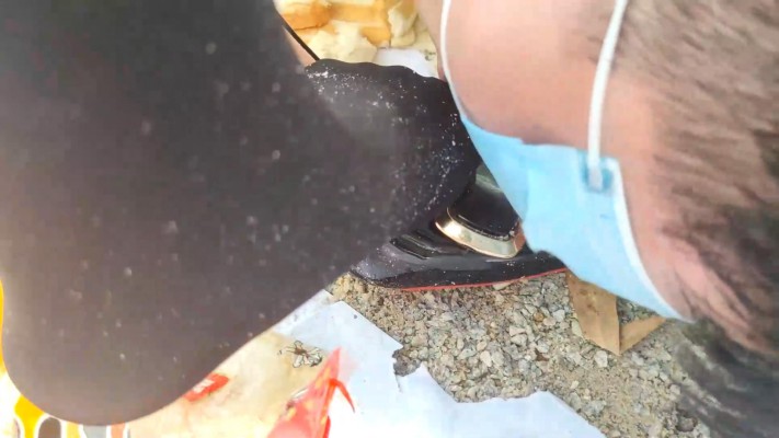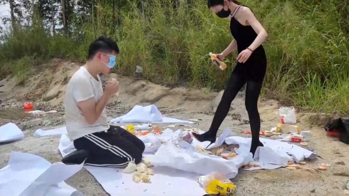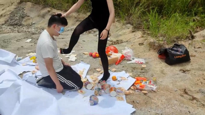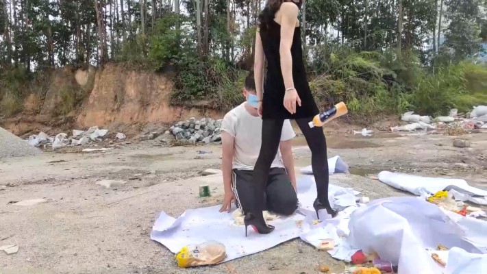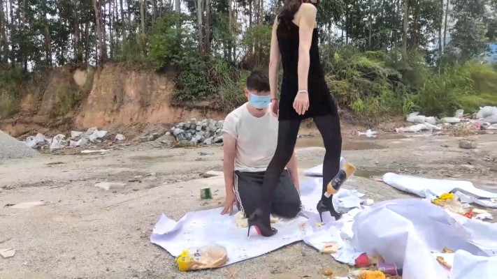 广州小鱼女神户外黑丝高跟踩食物贱狗跪吃,用奴的衣服给主人擦鞋 YC-230611