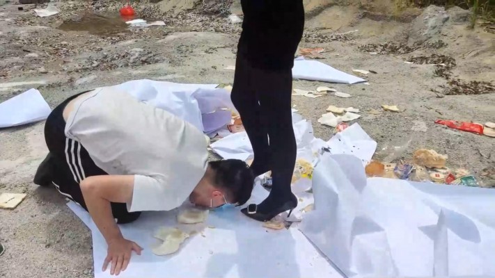 【内容简介】: 黑丝高跟广州小鱼女神,把奴隶带到户外,让奴隶跪着看自己的食物被主人高贵的鞋子无情地践踏,踩着奴隶的头吃被主人踩过的夹杂着泥沙的食物,命令奴脱下衣服给主人擦鞋,给主人舔干净高跟,高贵女神眼神里充满不屑和无视,与脚下卑微的生物形成鲜明对比。