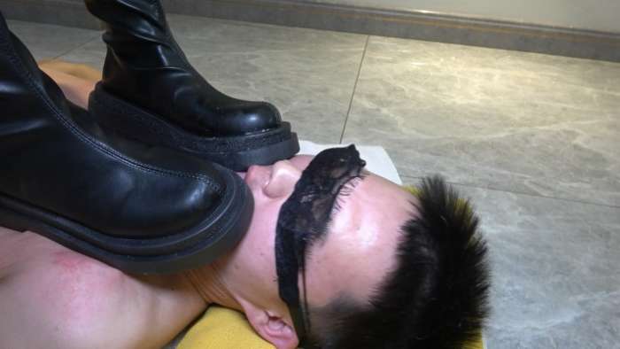 璐璐黑丝皮靴踩踏贱狗,边踩边让贱狗舔靴子,贱狗卖力的舔主人美丽的靴子,踩脸,踩脖子,踩肚子,口水,璐璐边踩边语言羞辱贱狗,贱狗被主人踩在脚下舔靴子十分兴奋,心里一直渴望被主人踩废。
