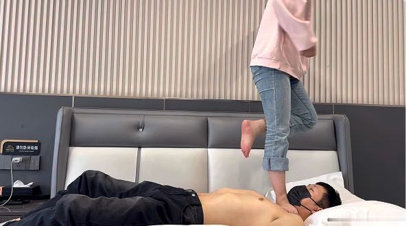 最开始她说也想尝试一下被踩肚子什么感觉,我就满足了一下她,不过确实没想到我140斤的体重她都可以承受得住。这次开发了全体重各种踩脖子,丝毫没有胆怯,根本不怕会不会把你踩坏。全体重踩头,踮脚尖踩软腹,不过她脚尖立的是我目前为止感觉最直的,直接插进肚子的感觉。