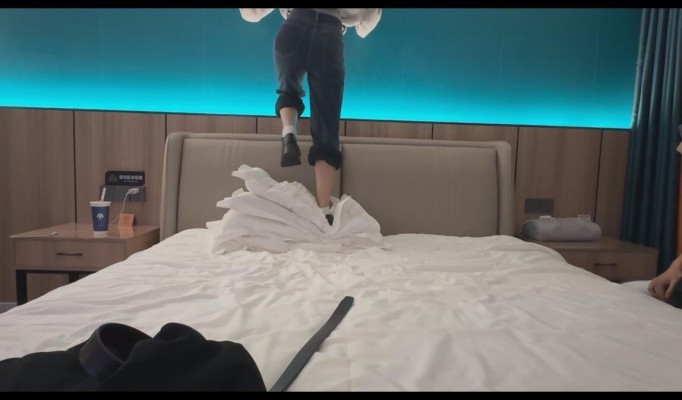 定制的双人踩枕头,两个女主穿着黑色的小皮鞋和运动鞋,皮鞋踩下去的时候会有种硬硬的压迫感,像是直接把重量压到一点上。运动鞋更厚实,但弹性更强,踩下去的瞬间也更沉重。一边踩一边调整角度,有时候站着不动直接把重量压着,有时候脚尖点着、旋转着踩。中间一段把鞋子脱掉,换成白袜踩。两个女主依次用白袜踩在枕头上,当两个人同时踩在上面的时候,那种缓慢下沉的感觉很明显。她们还会交换位置,时不时地把脚凑到一起踩同一个点,把整个枕头压得扁平,像是要把里面的空气都挤出来,喜欢看踩枕头的不要错过哦。